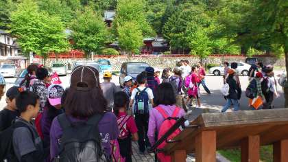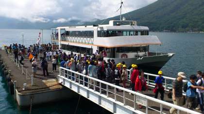 船は立木桟橋に到着。バスで華厳の滝に向かいます。