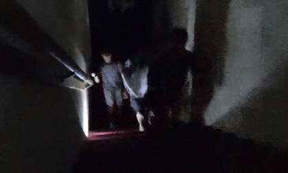 さあいよいよ本番です。明かりを消した暗い館内を二人一組で回ります。3階の保健室でお札をとって、地下の卓球室にあるお盆に納めて、ゴールは1階の食堂です。あちこちにちょっとした仕掛けがありますから怖いですよ・・・