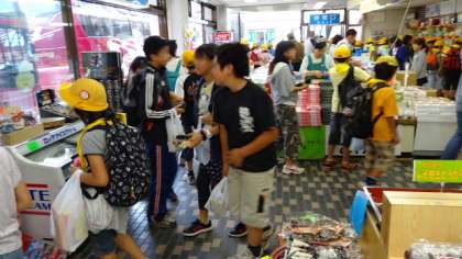 昼食後、学校通信に載せる短作文を書いて、合格した子からお土産を買いにいきます。3日間の思い出を一生懸命思い出して書いていました。お土産は何にしようかな?迷いますね。お土産を買った後はバスで一路世田谷へ。