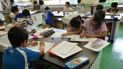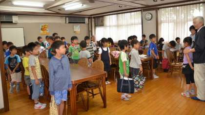 夏休み初日からがんばって勉強した子どもたちです。最後にみんなそろってきちんとあいさつして帰りました。終了後講師の皆さんが集まって念入りに打ち合わせをしました。これで寺子屋もしばらくお休みになります。次は9月1日(土)です。始業式が3日なのでその前となりますが、お忘れのないようにお願いします。