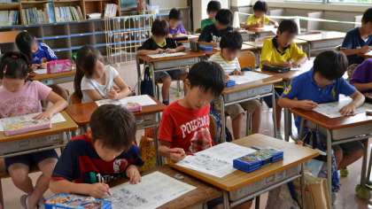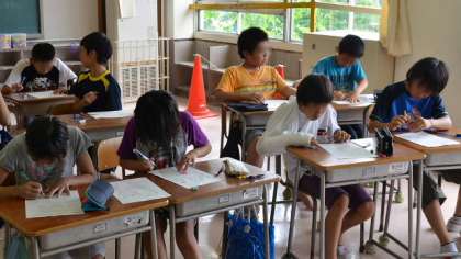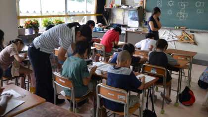 算数教室は夏の水泳教室と時間をずらして実施しています。水泳に参加した児童、またはこれから参加する児童が教室で学習に励みます。5・6年生も1学期の復習の問題を解いて、わからないことはわかるまで質問していました。算数教室は前半3日間、後半3日間の計6日間行います。事前申し込みですが、当日参加も大丈夫です。