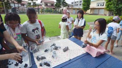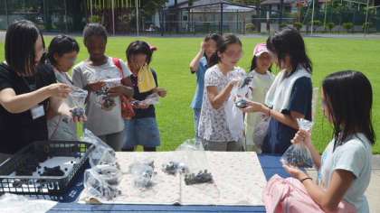 今年のブドウはとっても甘く美味しかったので、とったブドウはビニル袋に小分けして、プール帰りの子どもたちに声をかけ、持ち帰らせました。残念ながら参加者全員分はなく、3・4年生で品切れになってしまいました。ごめんなさい。