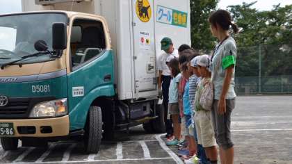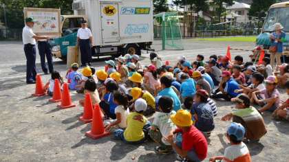 特に内輪差については、わかったいるつもりでもびっくりです。迫ってくるトラックに子どもたちもびっくり。交差点では一歩下がる習慣が身についたと思います。最後にご指導いただいたヤマト運輸の皆さんにお礼を言って終わりました。