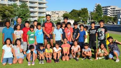 練習が終わって、末續さんへの質問コーナーです。遠慮のない質問が飛び出してひやひやしましたが、さすが一流アスリート。的確な答えで子どもたちも納得です。最後は学年ごとに記念撮影をして終了しました。お忙しいところ来校してくださった末續さんはじめスタッフの皆さん。そしてこの企画を紹介してくださったNPOの皆さん。そして裏方として運営に携わってくださった新BOPの皆さんありがとうございました。子どもたちのよい思い出になりました。