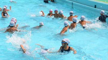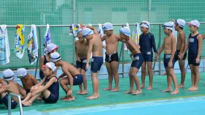 11日(火)3・4校時は、1・2年生がプール納めをしました。今シーズンは天気に恵まれ、水泳の授業や夏休み水泳教室がほとんど中止にならなかったため、例年より充実した指導ができました。その成果か、特に低学年の泳力が伸びました。どの子もリラックスしてしかも楽しく、水に親しめるようになったことが大きな成果です。その結果泳ぎ方を少し教えるだけで、泳げる距離もどんどん伸びました。今日は検定も行い、級が上がった子がたくさんいたこともうれしいですね。
