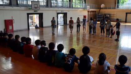 集会の終了後、体育館に残った2年生に、参観にかけつけてくださった保護者の方から一言ずつお褒めの言葉をいただきました。子どもたちの満足そうなようすが印象的です。希望っ子発表会(学芸会)にむけてはずみとなる、とてもよい発表ができました。
