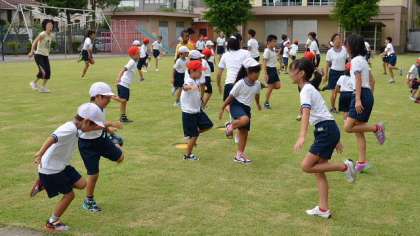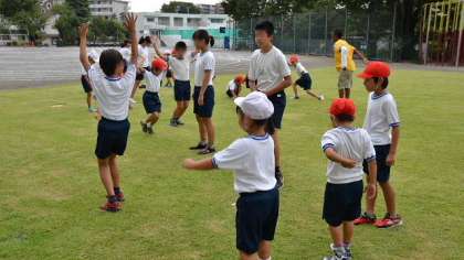 14日(金)、6年生が1年生に、全校児童が運動会でおどる「ジンギスカン」を教えました。芝生の上で楽しそうに踊る子どもたち。たのもしいお兄さんお姉さんぶりを発揮して、ていねいに教えていました。写真からその時のほほえましい雰囲気が伝わりませんか。
