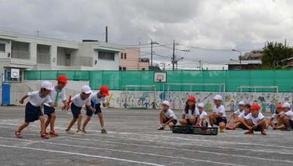 18日昼、低学年の選抜リレーの練習のようすです。空は今にも雨が降り出しそうな雲が出ています。そんな中で、子どもたちの元気な走りが見られました。さすがリレーの選手。なかなかの走りです。バトンパスが上達すると、すばらしいリレーが期待できそうです。