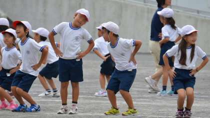 29日(土)の運動会にむけて、保護者家族の皆さんに練習の成果を見せたいと思い、子どもたちががんばっています。写真は、見ていると思わずほほえんでしまう1・2年生の玉入れの練習です。なぜ、玉入れなのに踊っているの?・・・答えは運動会当日ご覧ください。