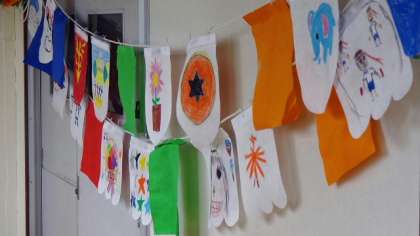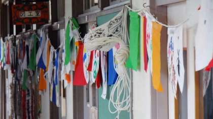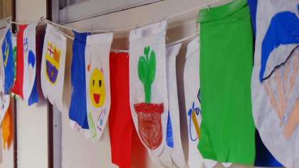 運動会は、今週の29日(土)ですが、今年は天候が不安定で、今週の練習や当日の天気が心配です。ところで、図工室前に運動会当日校庭の頭上高くかかげる運動会の旗を展示してあります。子どもたち一人一人が図案を考えて描きました。それぞれの思いが見えておもしろいですね。ご来校の際にご覧ください。