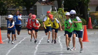 昼の高学年リレーのようすです。練習を重ねて、だいぶバトンタッチがうまくなってきました。ゾーンの使い方や、インコースを早くとるようにすることが課題ですね。