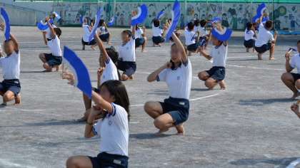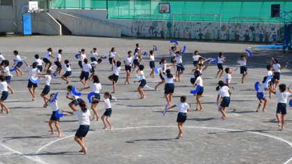 5校時、5・6年生の「みかぐら」練習です。指導している担任も熱がこもってきました。それに応えて子どもたちもがんばっています。だいぶ腰が低くなり、力強さが増しています。