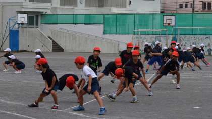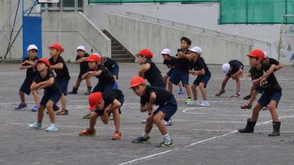 25日、今日は1・2年生が表現種目「キッズソーラン」で着る予定の黒Tシャツを着て練習しました。日に日にじょうずになっている1・2年生。黒の衣装でまた一段と演技がしまって見えました。