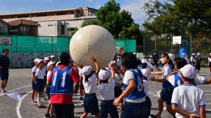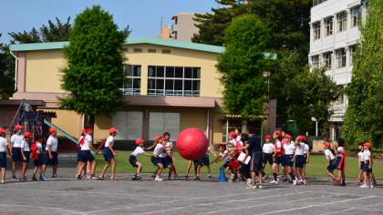 全体練習の後半は、子どもたちが本気で燃えました。全校競技、大玉送りの練習です。本校は児童数が少ないので、大きな玉を頭上で送るのは大変です。1人ひとりが意識して参加しないと結果に響くのでシビアです。今日は2回練習して白組の勝利でしたが、本番はわかりませんよ!