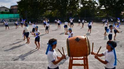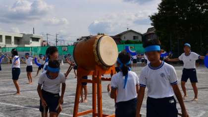 5・6年の「みかぐら」です。太鼓も6年生のみかぐらリーダーがたたいています。