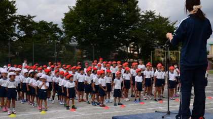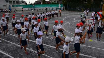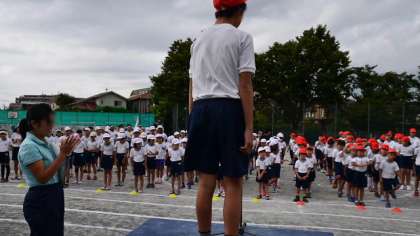 27日、3回目、最後の運動会全体練習です。天気が不安定で練習が十分できるか心配でしたが、結局予定通り練習が進んでいます。今日は入場行進、開会式、応援、閉会式の練習をしました。入場行進では全員の足並みがそろってきました。
