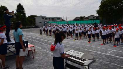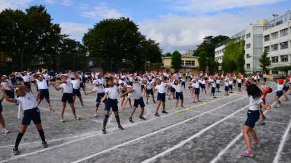 全体練習、最後はおわりの体操と閉会式の練習をしてすべて終了。29日の本番にむけて準備完了です。近づいてきていた台風も太平洋上にコースを変えたようで、現在のところ天気予報も29日実施に向けてゴーサインです。