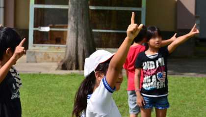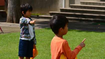 子どもたちは途中で作戦変更。指を高く上げてじっと待つことにしました。すると・・・