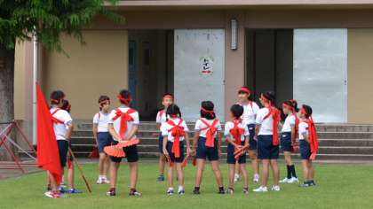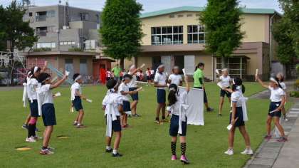 応援団がみんなより一足早く登校して応援の練習をしました。運動会を盛り上げる大事な役目。がんばっています。