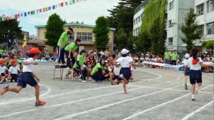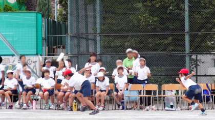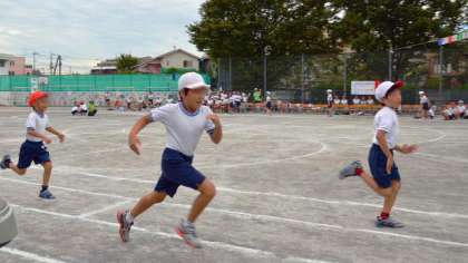 最初の個人種目は3年生の80m走です。昨年までは50mの直線路でしたが、今年は距離も伸びてコーナーがあります。力強い走りを見せてくれました。