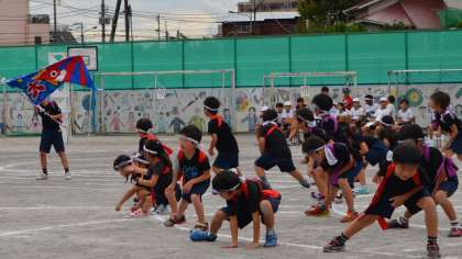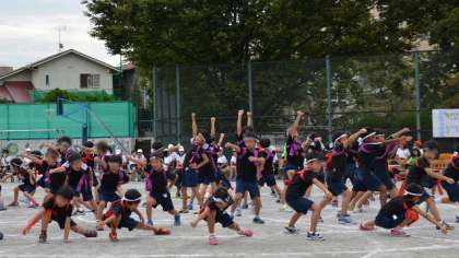 途中2回、並び方を変えて踊るという難しい課題にも挑戦。見事こなした1・2年生すばらしい。最後もビシッときめました。