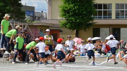 1年生の50m走です。本校では走る前にスタート位置に着いた子どもたちの名前をフルネームで呼びます。元気に返事をする1年生。かっこいいですね。走る姿も颯爽としています。入学から半年、りっぱな小学生ですね。