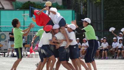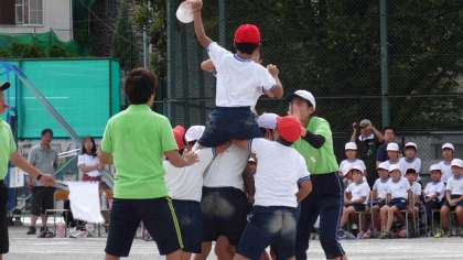 2回戦は一騎打ち。巻き返しを図って赤が頑張りました。最後の大将戦は行き詰まる戦いに。結果は白の勝ち。闘志あふれる戦いぶりで、会場を沸かせた5・6年生でした。