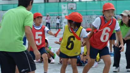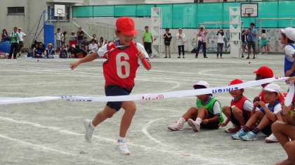 低学年リレーは熱戦の末、赤が1位でゴール。さすが代表選手、低学年とはいっても、1・2年生はトラックを半周、3年生は一周を風のように駆け抜けました。