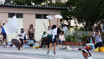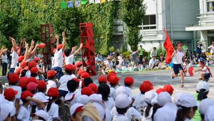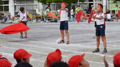 赤の応援も負けていません。恒例のウェイブでは、参観の家族、地域の方も一緒になって盛り上げて下さいました。さあ午後の熱戦がスタートです。