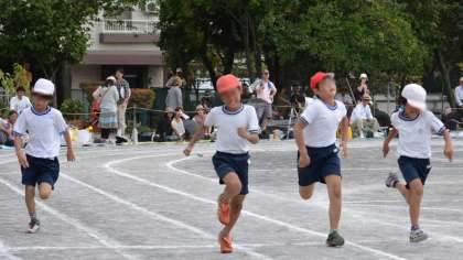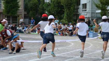 個人種目の最後は4年生の80m走。プログラムの変更で、つい先ほどまでの演技で疲れているにもかかわらず、力走を見せてくれました。
