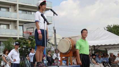 閉会式。今年も優勝旗は赤組の手に。PTA会長さんのねぎらいの言葉に子どもたちも満足。そして6年児童代表の言葉に感動です。