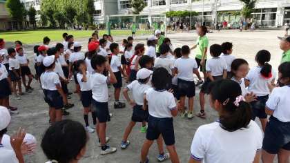 片付け終了後、最後まで一生懸命働いた5・6年生を、担任が木陰に集めてねぎらいの言葉をかけます。本当に頑張った高学年の子どもたちです。最後は一本締めで解散しました。希望丘小学校の運動会。「全力」と「本気」が今年のキーワードでしたが、ご覧になられた皆様の感想はいかがでしたか? 2学期はこの後「希望っ子発表会(学芸会)」を控えています。再び、子どもたちのすばらしい姿をお見せできるように、職員一同頑張りますのでご支援をお願いします。校長:千葉