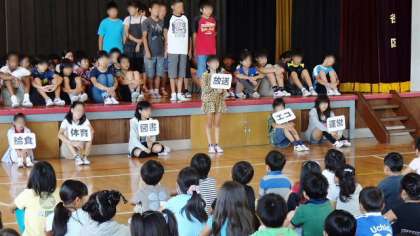 今週から児童会委員会活動が前期メンバーから後期メンバーに変わりました。5日朝はその委員会メンバーの紹介をする集会です。委員長、副委員長が自己紹介して、委員会の活動内容を説明します。さすが希望っ子の伝統。みんなの前でしっかりと発表が出来ました。