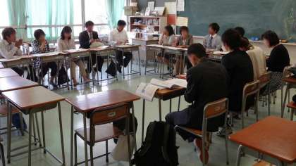 10日午後、船橋希望中学校に、船橋小学校、千歳台小学校、そして本校の4校の教員が集まって、小中合同研究会を行いました。これは世田谷9年教育「船橋希望学舎」としての取り組みです。中学校の5校時を授業公開し、その後、小中学校の教員が教科ごとの部会に分かれて、研究協議会を行いました。残念ながら、この日は事件発生に伴う対応があり、3校の小学校教員は遅れての参加となりましたが、協議会は充実した話し合いができました。
