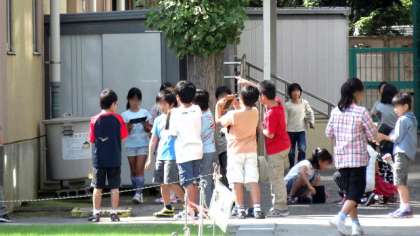 11日、3年生理科の授業のようすです。写真ではわかりにくいと思いますが、実は子どもたち一人一人が鏡をもっています。太陽の光を反射させて、光の直進性や反射、光の明るさや熱についての学習です。この学習は家庭でもできます。遊び感覚で、鏡に光を反射させる経験は大事です。今日は3年生の学習二つを紹介しましたが、子どもたちが体験を積み重ねることによって、学習に反映されることがけっこうあります。お子さんの教科書をのぞいてみて、これならできるという内容を見つけたら、ぜひ親子でやってみていただけると、学校での授業にきっと役立つと思います。宿題ばかりが勉強ではありません。
