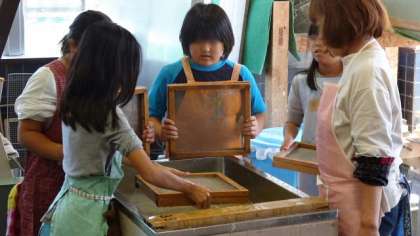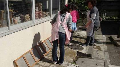 2枚目は自力ですきます。できあがった和紙は天日干しして、できあがりは後日送ってもらいます。できあがりが楽しみですね。指導してくださった皆さんにお礼を言って、お弁当を食べて学校へ帰りました。伝統工芸室の皆さん、引率でお手伝いをしてくださった保護者の皆さん、ありがとうございました。