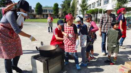 この日は天気がよく、気温もずいぶん上がりました。炎天下で火の近くで作業するのは大変でしたが、私もお手伝いさせていただき、楽しい時間をすごしました。便利な世の中ですが、自分で一から何かをつくる経験は大切ですね。カレー作りも順調に進み、おいしそうなカレーのできあがりです。