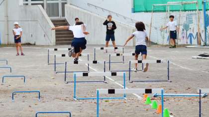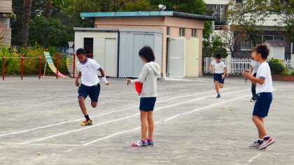 23日は雨がふりましたが、朝だけは降っていませんでした。その短い時間を使って6年生が連合運動会に向けた練習をしました。どの種目もずいぶん走り方や跳び方が上達しました。本番が楽しみです。