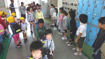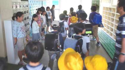 今週のあいさつ当番は4年生です。昨日の朝会であいさつのしかたについて指導したところ、みんなていねいに立ち止まり、頭を下げてあいさつできました。当番もやり甲斐がありますね。