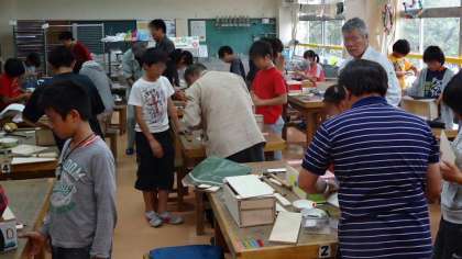 23日(火)、9日に続いて、6年生が図工の時間に、大工さんの指導を受けて木工作を行いました。さすがプロフェッショナル。適確な指導で、どの子も立派な作品ができあがりました。お忙しいところご指導ありがとうございました。