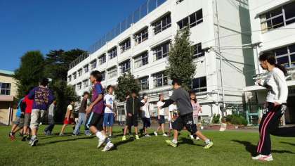 24日朝の6年生の練習風景です。明日25日がいよいよ本番の連合運動会。今日は最後の調整です。体育着は家で洗濯してゼッケンをつけるため、今日は普段着での練習です。明日はがんばるぞ!