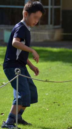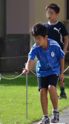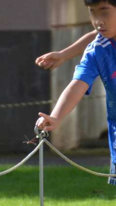 芝生の近くにたくさん飛んでくるトンボ(アキアカネ)を捕まえようとしている子どもたちです。でもそう簡単には捕まりません。それでもあきらめません。休み時間の最後には一匹ゲット。喜んで「教室で見せてから逃がすからね」といって戻っていきました。