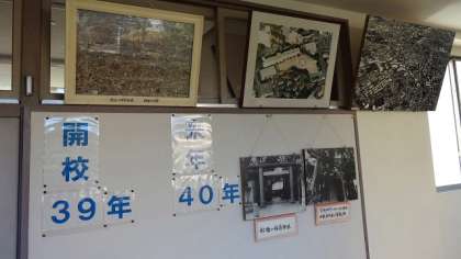 東校舎3階、中央階段近くに、来年の40周年にむけて、展示コーナーを設置しました。まだ展示内容は少ないのですが、今後少しずつ展示内容を充実させていきたいと思っております。本校開校当時から今までの資料や写真をお持ちの方がいらっしゃいましたら、ぜひお貸しいただければ幸いです。連絡をお待ちしております。校長:千葉