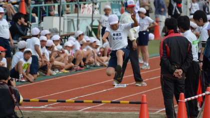 男子も女子と同じ種目で競います。走り高跳びには1名がエントリー。なんと132センチを参加者中唯一クリアし、続いて135センチに挑戦し惜しくも失敗したものの、この日の1位を獲得しました。1回1回の跳躍を遠くから見て、これには応援のみんなも大興奮でした。走り幅跳びには2名がエントリー。4mにせまるかっこいいジャンプを披露し、こちらも観客席をわかせました。応援がすばらしい!