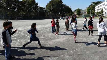 昨日の6年生の活躍に刺激されたのか、校庭のあちこちで長なわとびをする姿が今日は目立ちました。写真は中休みの5年生のようすです。みんなで声をかけあって工夫しながら跳んでいました。