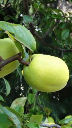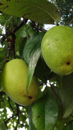 柿が色づいて食べ頃になってきましたが、その他の学校の敷地内に育っている果樹を紹介します。例年はそろそろカリンが黄色に色づき、よい香りが漂う頃なのですが、今年は色づきがおそく、表面に黒い斑点が目立ちます。夏の水不足と暑さが影響しているのでしょうか?