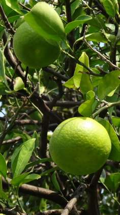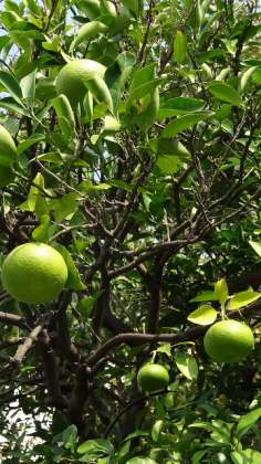 校庭東側プールそばのミカンです。カリンは不作のようですが、ミカンはツヤツヤとした表皮で、大ぶりの実が数多く実っています。あと二ヶ月くらいたつと食べ頃になるのではと思います。想像すると、ミカンの甘酸っぱい香りが想像できて楽しみですね。
