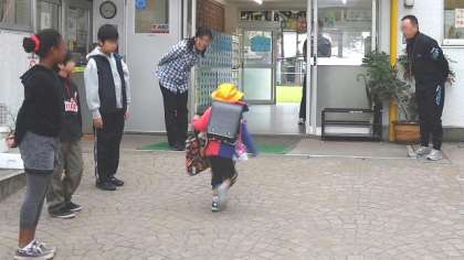 5日(月)、あいさつ月間も今週で終了。今週のあいさつ当番は5年生です。みんなよりも早めに登校して玄関で登校してくる子どもたちに「おはようございます」のあいさつをしました。あいさつ運動に取り組んだ成果が出て、登校してくる子どもたちがしっかりあいさつするようになったことがうれしいですね。