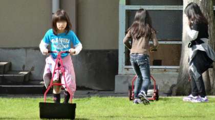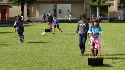 中休み、忙しい5・6年生のエコ委員会の子どもたちの代わりに、4年生に芝刈りをしてもらいました。何事も経験。初めて芝刈り機を使って見た感想は?と聞くと、みんな楽しかったという答えでした。