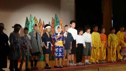 希望っ子発表会にむけての体育館での練習も、いよいよ本格的になってきました。照明や衣装もつけての2年生の練習です。子どもたちも本気モードです。